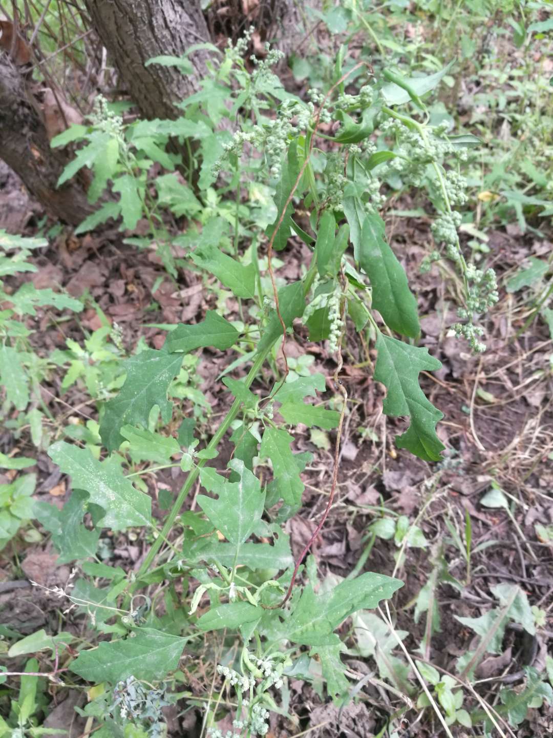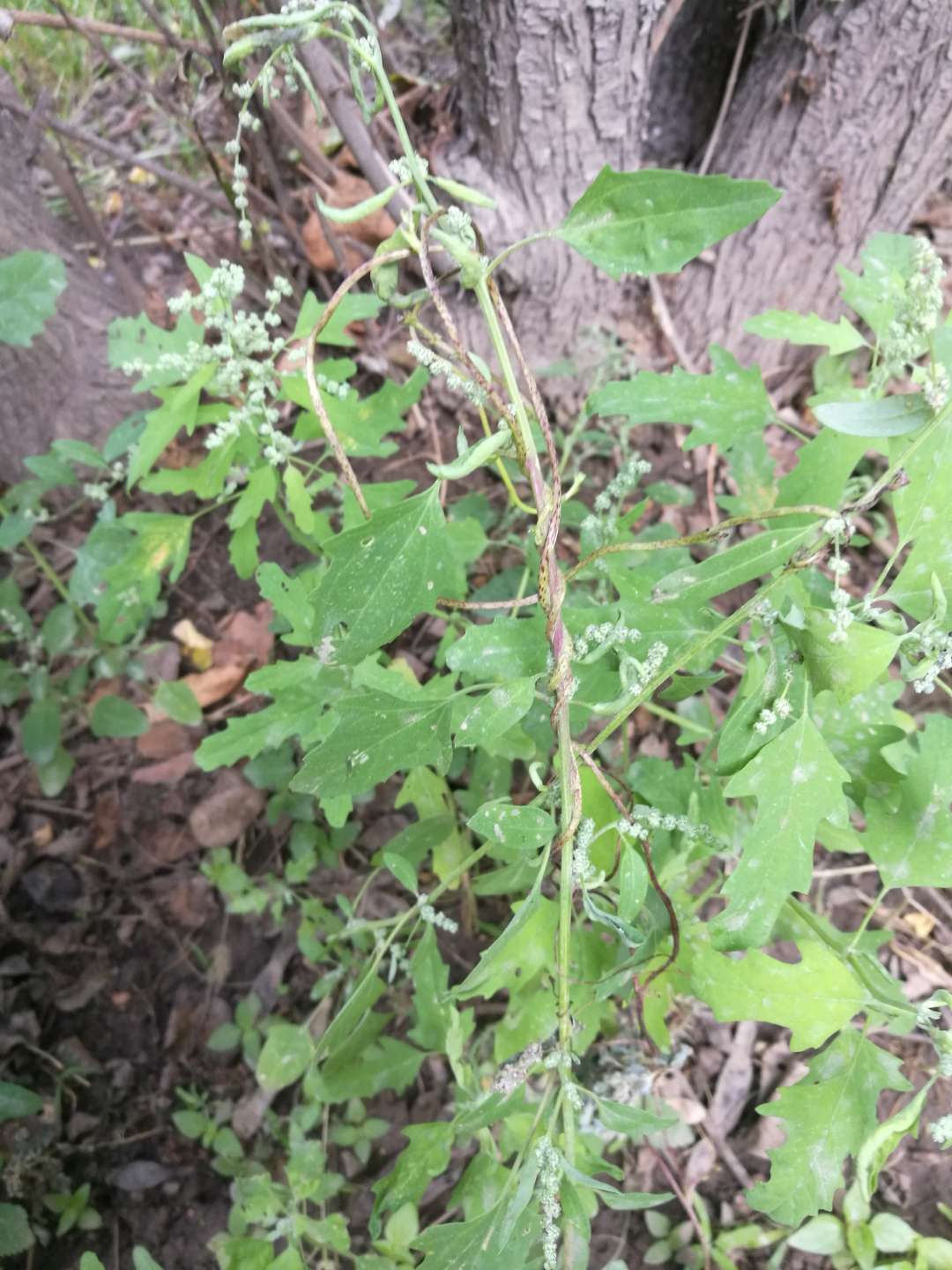 暂时寄生在灰条(灰灰菜)上的初生菟丝子