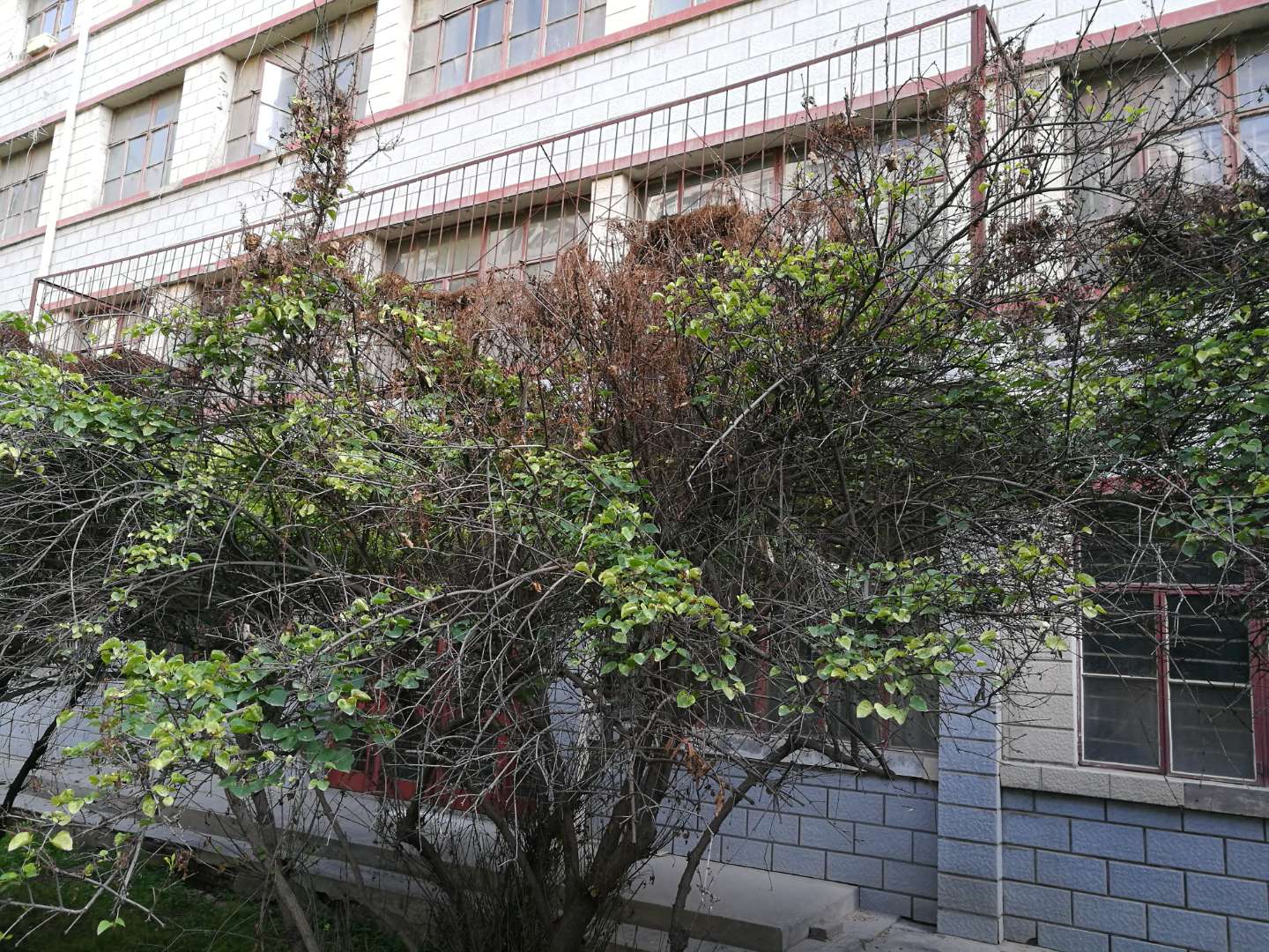 莬丝子寄生导致紫丁香叶片减少,图右为去年未被寄生的植株,图左为去年被寄生的植株